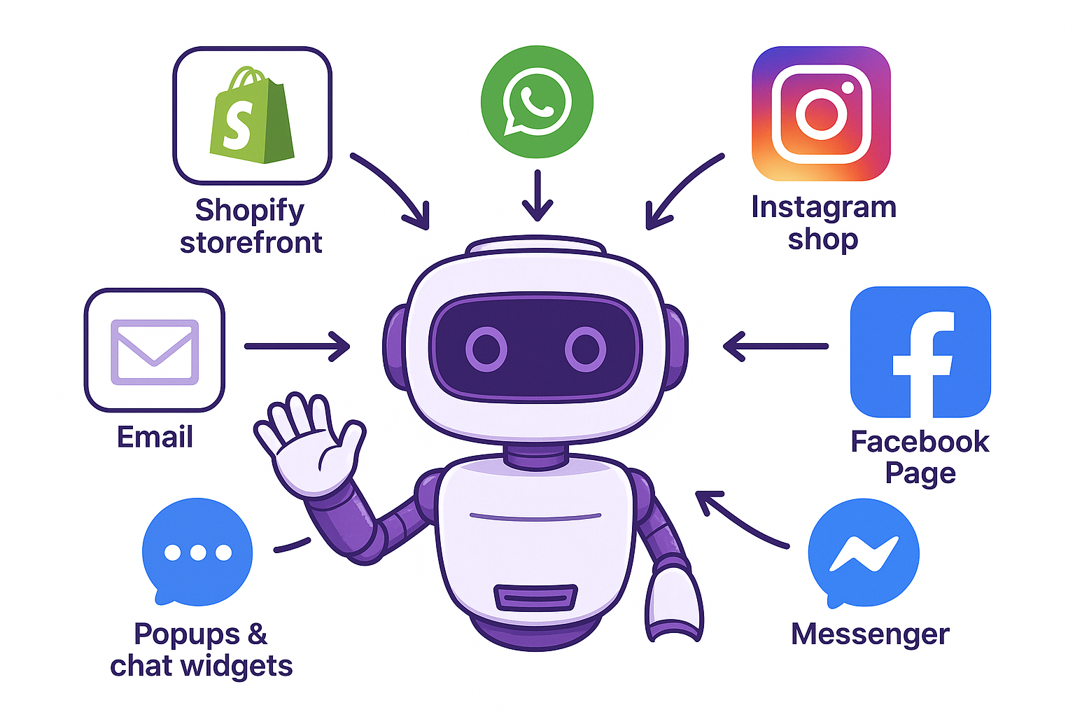 Seamless support across your website, WhatsApp, and Facebook all from one AI.